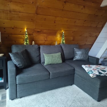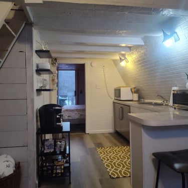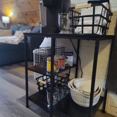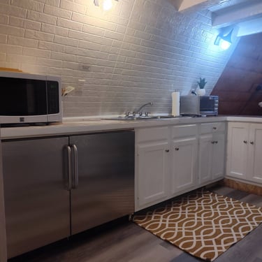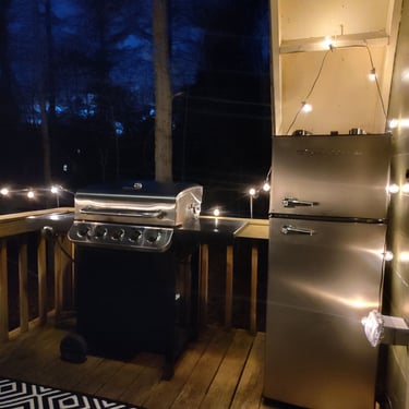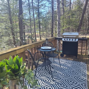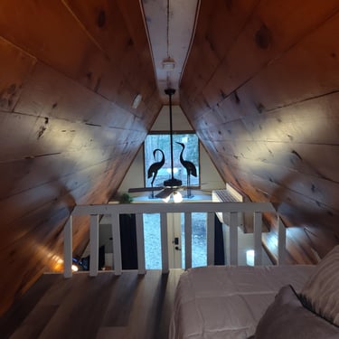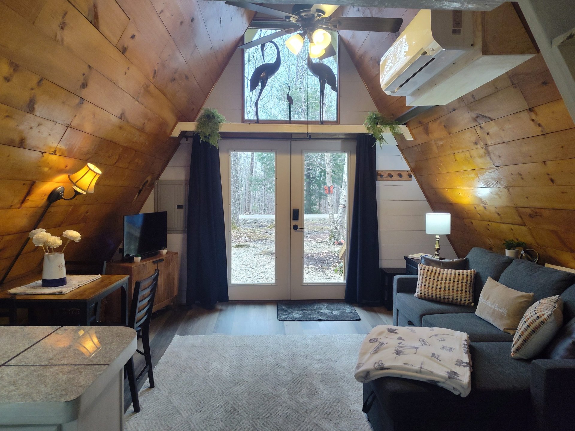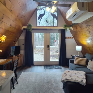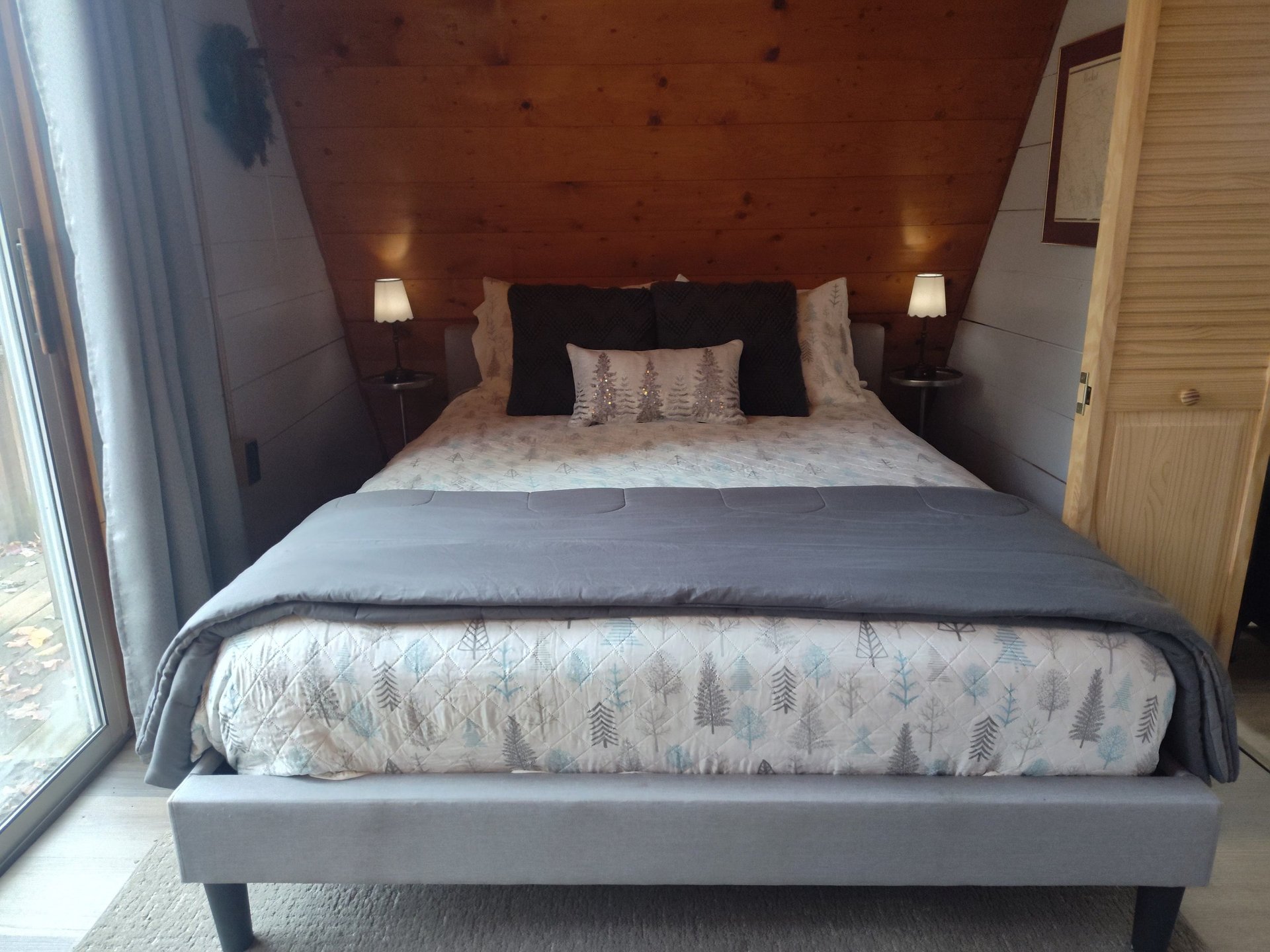 The cabin is equipped with modern amenities such as wifi and a smart TV, ensuring that you stay connected, entertained and even the ability to work remotely. The fully stocked kitchen includes all the necessary utensils, pans, appliances, and condiments for your convenience. There is no oven/range, however we provide a hot plate, toaster oven, microwave and grill for any necessary cooking!