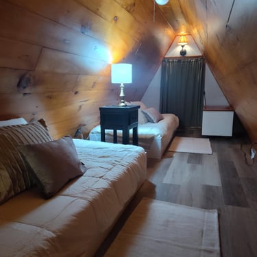 Experience the charm and peacefulness of the Berkshires in our A-Frame Cabin located within walking distance to one of the many neighborhood private lakes. Dog-Friendly, 1 Queen Bedroom, 1 Bathroom, and loft with twin beds for kids/teens or adults! Enjoy a fire in our beautiful stone fire pit surrounded by large pines or take the 3 minute stroll down to the nearest lake and beach access. An escape for any nature lover to love!
